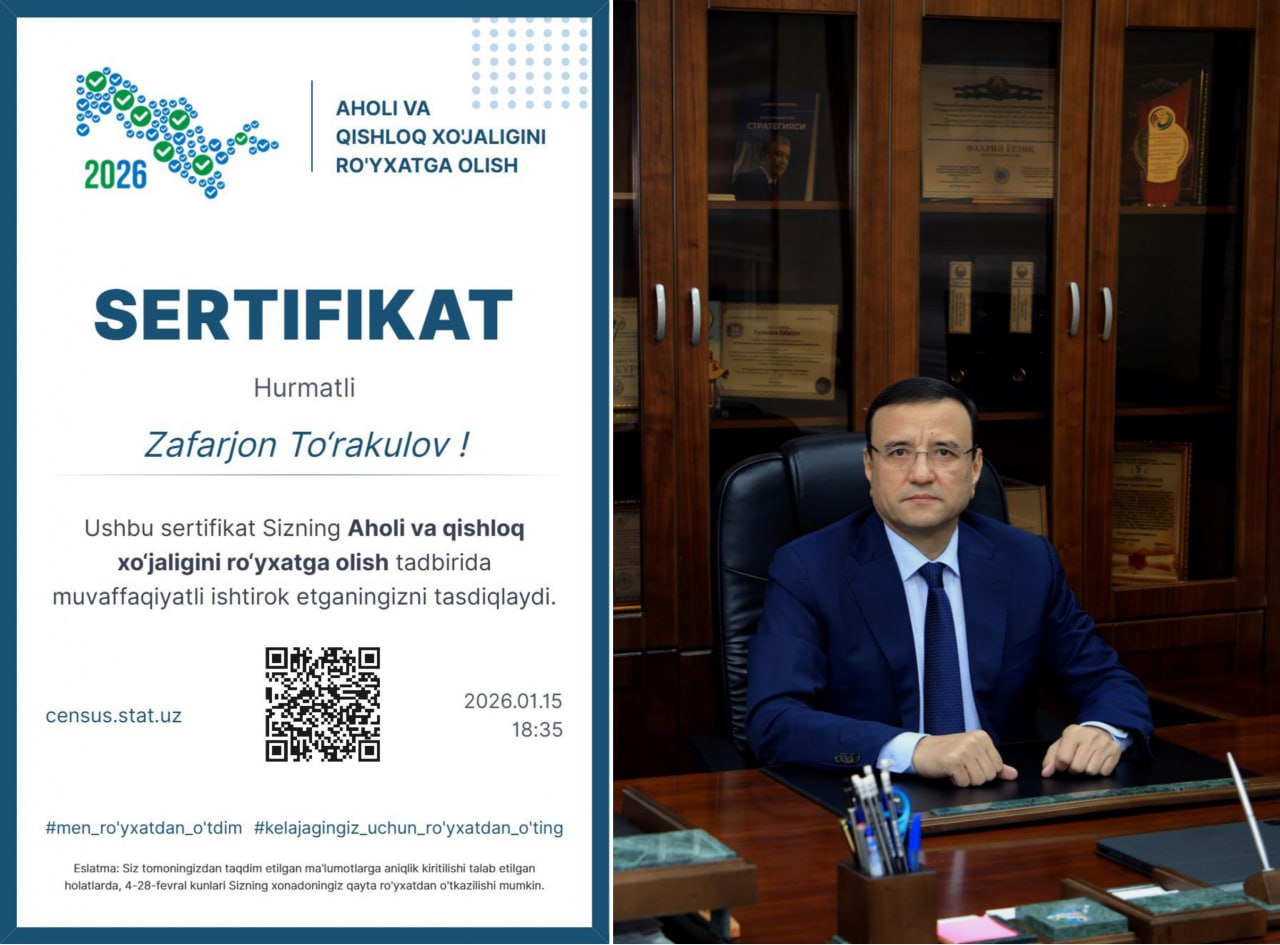 Avval xabar berganimizdek, aholi va qishloq xo‘jaligini ro‘yxatga olish tadbirining birinchi bosqichi doirasida 2026 yil 15–31 yanvar kunlari onlayn ro‘yxatdan o‘tgan aholi orasidan tasodifiy tarzda aniqlangan g‘oliblar Milliy statistika qo‘mitasi tomonidan qimmatbaho sovg‘alar bilan taqdirlanib kelmoqda.