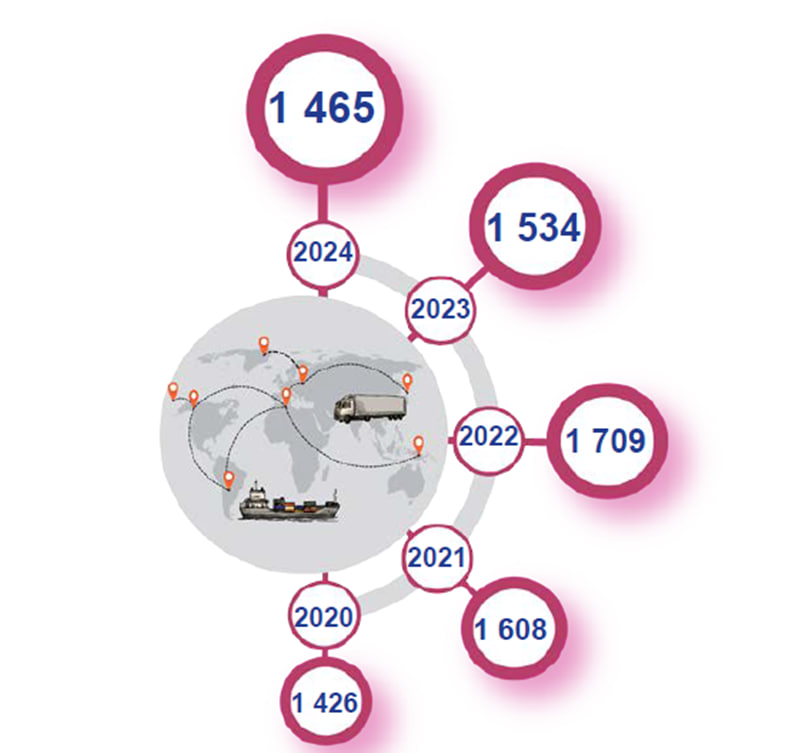 2024-yil 1-mart holatiga ko‘ra, tashish va saqlash xizmatlari sohasida faoliyat ko‘rsatayotgan korxonalar soni 1 465 ta miqdorida qayd etildi.