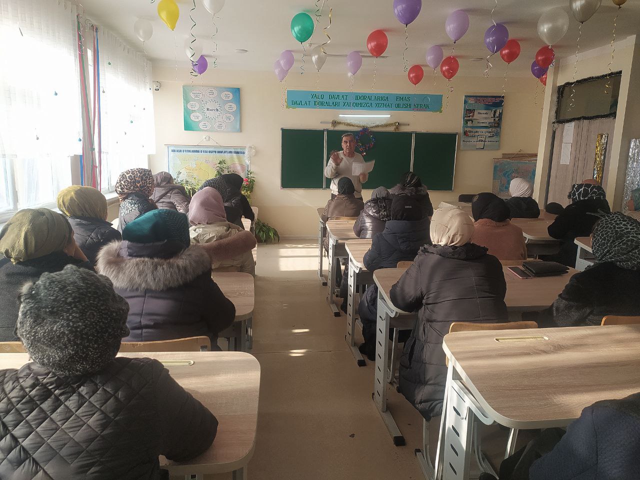 Joriy yilning 5-yanvar kuni Marg‘ilon shahridagi 17- umumiy o‘rta ta’lim maktabining pedagog va xodimlari ishtirokida O‘zbekiston Respublikasining 2020-yil 16-martdagi “Aholini ro‘yxatga olish to‘g‘risida”gi O‘RQ- 611-sonli qonunining mazmun va mohiyatini tushintirish bo‘yicha seminar tashkil etildi.