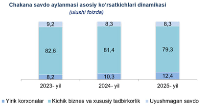 Farg‘ona viloyati statistika boshqarmasining bergan ma’lumotiga ko‘ra, 2025-yil 1-iyul holatiga chakana savdo sohasida faoliyat ko‘rsatayotgan tijorat korxonalari soni 7403 tani tashkil etib,