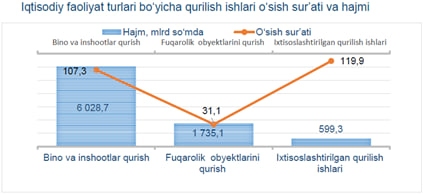 2025- yilning yanvar-iyun oylarida, Farg‘ona viloyatida jami 8 363,1 mlrd so‘mlik qurilish ishlari bajarilib, 2024- yilning mos davriga nisbatan 112,6 % ni tashkil etdi.
