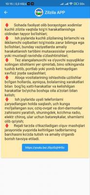 O‘zbekiston Respublikasi Prezidentining 2022-yil 30-maydagi "O‘zbekiston Respublikasining seysmik xavfsizligini taminlash tizimini yanada takomillashtirish chora-tadbirlari to‘g‘risida"gi PF-144-son Farmonining 2-ilova bilan tasdiqlangan “Yo‘l xaritasi”ning 37-bandi ijrosini taminlash maqsadida Farg‘ona viloyati statistika boshqarmasi xodimlari tomonidan Favqulotda vaziyatlar vazirligi Akademiyasi huzuridagi Fuqaro muhofazasi instituti tomonidan 2022-yilda “Aholining barcha qatlamini zilziladan oldin, zilzila vaqtida va zilziladan so‘ng to‘g‘ri harakat qilishga mustaqil o‘rgatish uchun mo‘ljallangan “Zilzila mobile” mobil ilovani o‘zining mobil telefonlariga yuklab olib, hozirda mustaqil ravishda o‘rganmoqdalar.