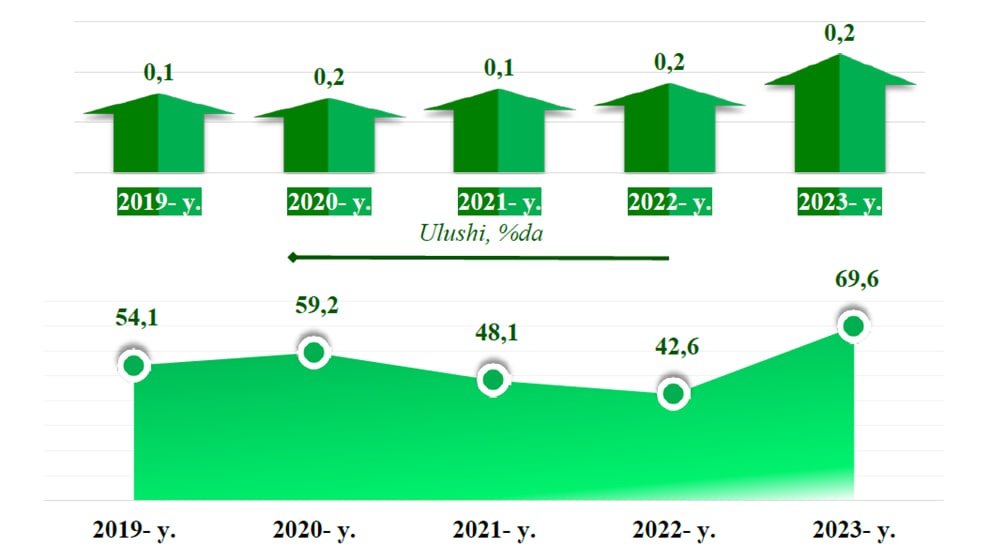 2023-yilning yanvar-iyun oylarida kichik biznes subyektlari tomonidan amalga oshirilgan mahsulot (ishlar va xizmatlar) eksporti hajmi 236,4 million AQSH dollarini yoki umumiy eksport hajmining 69,6 %ini tashkil etdi.