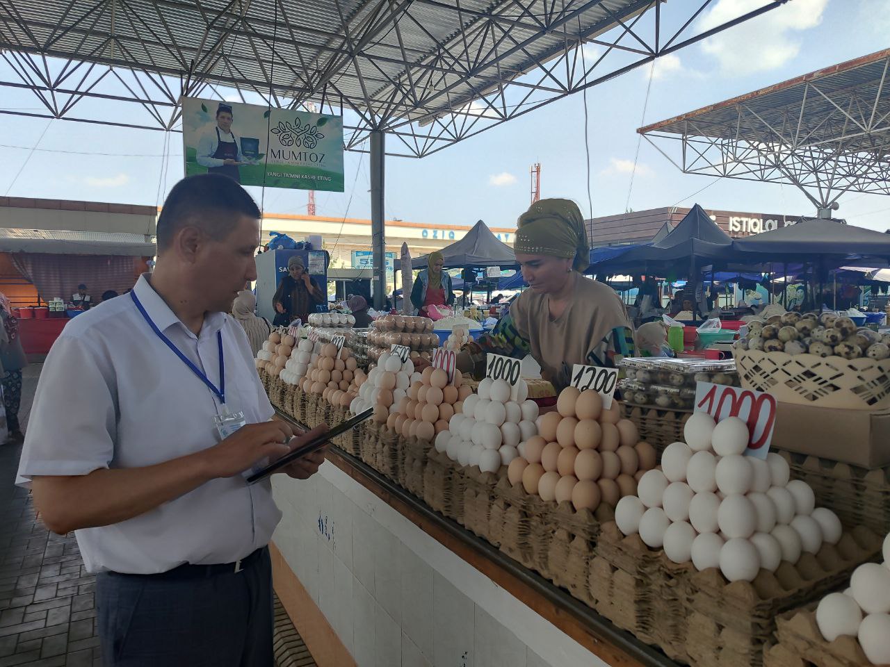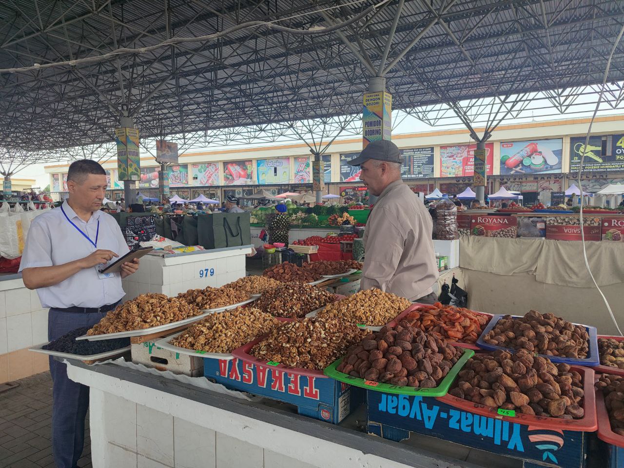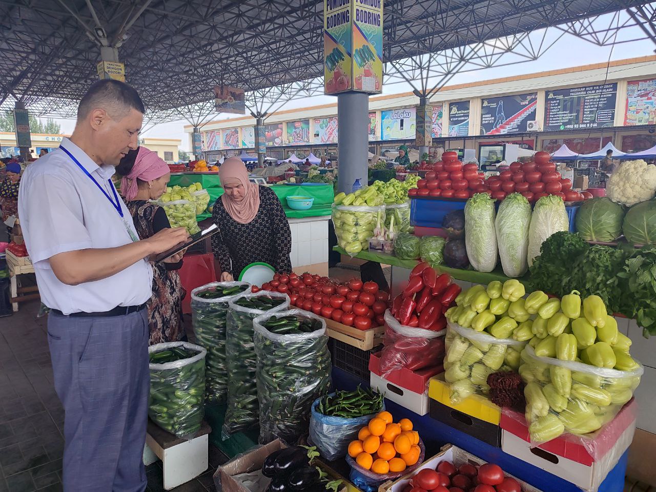 Joriy yilning 21-may kuni Farg‘ona shahar statistika bo‘limi yetakchi mutaxassisi R.Sharopov tomonidan Farg‘ona shahar dehqon bozorida 12-bozor (oylik) tanlanma kuzatuvlari o‘tkazildi. Kuzatuv jarayonida un va un mahsulotlaridan tayyorlangan mahsulotlar, mevalar, sabzavotlar, tuxum va boshqa mahsulotlarining oy davomida o‘rtacha bir kunlik sotilgani miqdori va hajmi o‘rganildi. Olingan ma’lumotlar joyida planshet qurilmasiga kiritish ishlari amalga oshirildi. Bundan tashqari mazkur so‘rovnoma yuzasidan jismoniy shaxslarga tavsiyalar berildi.