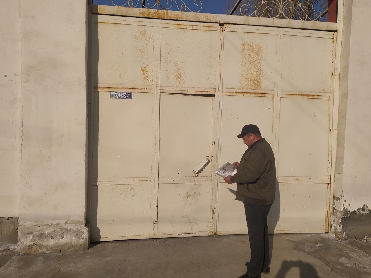 Tez tibbiy yordam ko‘rsatish, ichki ishlar xizmatini yaxshilash, favqulotda vaziyatlar holatida ishlarni tashkil etishda manzillarni tez va to‘g‘ri topib borishda uylarni raqamlanganligi va ko‘cha nomi belgilarining mavjudligi alohida o‘rin tutadi. Shu bois joriy yilning 26-dekabr kuni Buvayda tumani statistika bo‘limi mutaxassislari tomonidan tumandagi “Dotxo” mahalla fuqarolar yig‘inida mahallaning yangilangan xaritasiga kiritilgan o‘zgartirishlarni joyiga chiqib, raqamlangan va raqamlanmagan uylarni, ko‘cha nomi belgilarining mavjudligi, aholi sonini hamda mahallada mavjud noturar obyektlarni xarita bilan solishtirish ishlari amalga oshirildi.