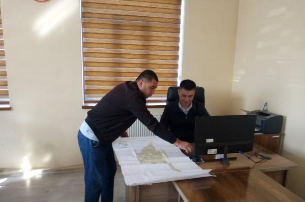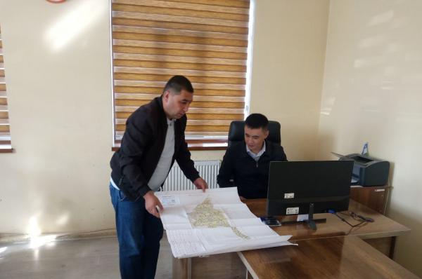 Kadastrlar palatasining Yozyovon tumani bo‘limi hamda tuman ro‘yxatga olish bo‘limi mutaxassisilari tomonidan sxematik xaritalarga o‘zgartirishlar kiritish bo‘yicha olib borilayotgan ishlar.