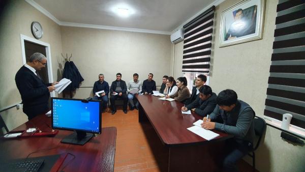 Seminarda viloyat statistika boshqarmasi bosh yuriskonsulti D.Teshaboyev so‘zga chiqib, JKning 168-moddasi ya’ni, firibgarlik jinoyati, ushbu jinoyatni boshqa mulkka qarshi qaratilgan jinoyatlardan farqlari, yuridik tahlili, yangi qonun bilan kiritilgan o‘zgartirishlar, firibgarlik jinoyatini o‘ziga xos jihatlari va ushbu jinoyat yuzasidan amaldagi O‘zbekiston Respublikasi Oliy Sudining 2017-yil 11-oktabr kunidagi “Firibgarlikka oid ishlar bo‘yicha sud amaliyoti to‘g‘risida”gi 35-son qarori mazmun va mohiyati xususida qo‘z yuritdi. Bundan tashqari, mazkur qonun bilan O‘zbekiston Respublikasining 2015-yil 26-mayda qabul qilingan «Tashuvchining fuqarolik javobgarligini majburiy sug‘urta qilish to‘g‘risida»gi O‘RQ-386-sonli 3-moddaning to‘qqizinchi xatboshisida «tashuvchi — mulk huquqi asosida yoki boshqa qonuniy asoslarda transport vositasiga egalik qiladigan, qonunchilikka muvofiq yo‘lovchilarni hamda ularning mol-mulkini tijorat asosida tashish bo‘yicha xizmatlar ko‘rsatadigan va buning uchun tegishli litsenziyaga ega bo‘lgan yoxud ruxsat etish xususiyatiga ega hujjati bo‘lgan yuridik shaxs yoki yakka tartibdagi tadbirkor» sifatida tushunilishi lozimligi haqidagi fikr va mulohazalarini bayon qilib o‘tdi.